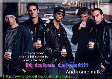 Here are all the things I support and here and there you might find a cute little banner (milk addie) well anyways on to important things. Okay well I was thinking about the bsb fans. I have to say I am pretty dissapointed with some of them. What is up with this girlfriend bashing. (If you were their girlfriend you would not like someone  bashing you) and other stuff that do with their personal lives. That is what it is PERSONAL! They are people like you and me. Think about if you were ever in their position. They are out there to make us (the fans) happy with their wonderful music and I have to say they are doing a good job at that. So please respect the BOYS, they have gone through a lot and all they want in return is our happiness. I just had to get that off my chest. *sigh* Now on with the banners!