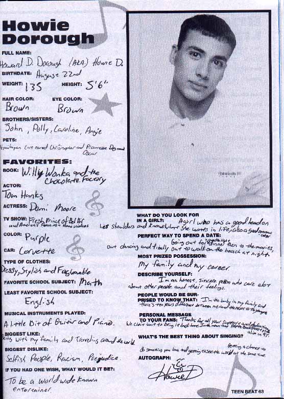 Born in Orlando, the last of five siblings, Howie D. has sung in choir, performed in community theater (Sound Of Music,