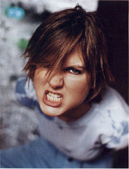 Q & AJULIANA HATFIELDON GIRLS WITH GUITARS, 'MY SO-CALLED LIFE' AND AN OLD SQUEEZEBY ERIN CULLEY TWO WORDS HAVE HAUNTED JULIANA Hatfield's singing career: Evan and Dando. The "alterna" darlings were roommates during their Boston-based music years, and, well, people talked. Still do. "But we're just good friends," says Hatfield, 27, picking her way through a bowl of vegetarian chili at L.A.'s Swingers restaurant. Besides, there's a lot more to Hatfield than a Lemonhead: She fronted Blake Babies in the late '80s, recorded two acclaimed solo albums (Hey Babe and Become What You Are), played "Spin the Bottle" on the Ubersoundtrack Reality Bites and, last season, was a homeless troubadour on My So-Called Life. Her new album, Only Everything, showcases a Hatfield totally unafraid to rock. "A lot of people had pigeonholed her as being kind of light and bubblegum," says album co-producer Sean Slade. "We wanted to rebel against that." All of which brings us to Evan who? It seems like there are a lot more female artists in the public eye now than when you started out. It's kind of in vogue to be a chick with a guitar. Five years ago no one wanted to sign me, but if I was starting out today, I'd probably be offered a million dollars by every record company. The press has always had a field day analyzing your lyrics. What's been the reaction to the new album? So far the reviews have been really good from men and not so good from the women. I've gotten a couple of pretty negative reactions from certain people who think a woman making music has to be on some crusade or something. I'm not writing about women's issues, necessarily. I'm writing about personal, human issues, and it pisses off a lot of women. It's very frustrating. The people who supposedly want progress are the ones cutting me down. Do you consider yourself a feminist? No. I hate labels. I don't belong to any group except a rock group. How do you view your lyrics on the new album? I see a lot of the songs as really optimistic. Hmm. How about "What a Life," where you sing: "'Sick sex', 'drug-addled,' 'debauchery-monger'/Wear it like a trophy/Open like a cut/Pick it like a scab/Feed it like a dog"? That one I'm kind of scared about the reaction I'll get. That song's pretty negative and grossly moralistic in a way and kind of disgusting. [Laughs] But it's just a song - it's not my worldview. You sing "Fleur de Lys" in French. Why? I wanted to make something of the eight years of French I took in school. And I wanted to write a rock song in French, because that's something you never hear. French music is just shit. French doesn't go with rock & roll. Do you regret telling the press three years ago that you were still a virgin? It just sometimes bums me out how it keeps getting regurgitated, but that doesn't really have anything to do with me. It's good to learn that something I say or do can get noticed: I could throw something out there and get attention if I needed it or wanted it. It works both ways. You have a unique girlish voice. When I was first taking voice lessons in college, I would claw at my throat and smoke and scream in an effort to roughen it up. But that stuff didn't really work. I'm not fighting it as much anymore. What was it like growing up in the conservative New England town of Duxbury, Mass.? It's only 45 minutes from Boston but surprisingly cut off. I didn't get much culture until I went to college. I never ate hummus. Never heard punk rock. And there were a lot of BMWs in my school parking lot. I don't like BMWs. They look really anal. A lot of your songs are about love gone awry. But have you ever found true love? I've never experienced a mutual, good love thing that lasted. But I definitely fantasize about it. I hear people say, "Oh, when I saw him, I knew I was going to marry him." That really happens in the world. I keep waiting for that to happen. What was it that inspired you to become a musician? Remember Donny and Marie on Friday nights? My best friend and I would watch that and act out all the skits and songs. I was usually Donny because I was more of a leader in our friendship. I was the take-charge one. You played a homeless angel on 'My So-Called Life,' which was your acting debut. What made you do the show? Were you a big fan? I loved it. It never ended the way you expected or wanted it to. There was always a lot of loose ends and weirdness, and I like that because that's what life is like. The right thing doesn't always happen. I think part of the reason it didn't do well was because it was on too early for the kind of people who'd be into it. Any more plans to act? I have this crazy dream of writing a novel, writing a script, directing it, acting in it. I would consider working at the craft of acting. What do you get out of making music? It's kind of necessary to my physical and mental health. I think if I didn't have it, I would just explode or implode or something. I would just, like, disappear. Reproduced without permission from Jules Main Page | Info | Gallery | Discography | Lyrics | Audio | Quiz Home | Godstar | Nic Dalton | Links | Site Info | Sign Guestbook | View Guestbook  |