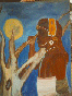 (Samburu warrior with tree, acrylic on pressed hardboard panel, 1995)