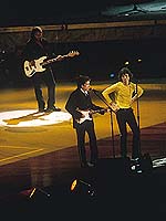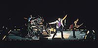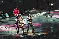 "Welcome to Bridges to Babylon, it’s nice being back here", says Mick in Spanish. He strips off his blue jacket revealing an orange shirt and yellow t-shirt he is wearing underneath. It’s time for new songs now, so they start playing "Flip the Switch". Mick shows once again that he still knows how to move. His body seems electrified by rock’n’roll and still thrusts sex-rock from his hips. Once again they go back in time to "Gimme Shelter" and Lisa Fischer shows her abilities singing with Mick, exchanging voices and moves in a sensual dance.