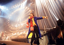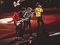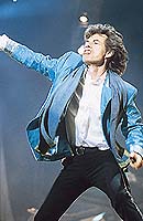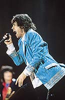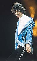 The show keeps travelling in time. The Stones have decided to show their 35 years history which is also the history of many of those who are in the audience. Arms lifted, lighters, shirts whirling in the air.... and Mick shares the game.