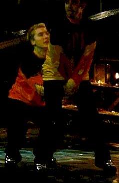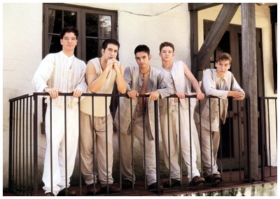 Lance's makeup looks better than mine! I'm sorry but that boy would make a really pretty girl. And its scary how he has Joey pinned up against the wall. Joey doesn't look to happy about it either. JC. Well just look at him.