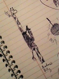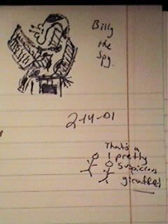 thanks to a very boring oceanography class in the spring of 2001 at a&m, i resolved to draw one billy applying to each page of notes at the top of each page.