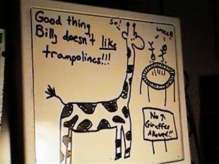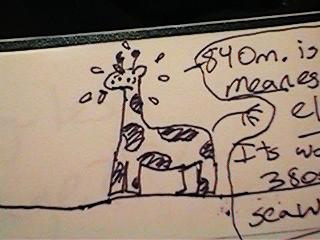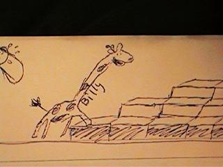 what you can't see is that to the left is a drawing of me climbing really tall stairs, and i'm quite tired. but billy you see... he has three-dimensional stairs. he's excited to reach the top. to my surprise, despite my inability to draw... i had some mad giraffe drawing skills.