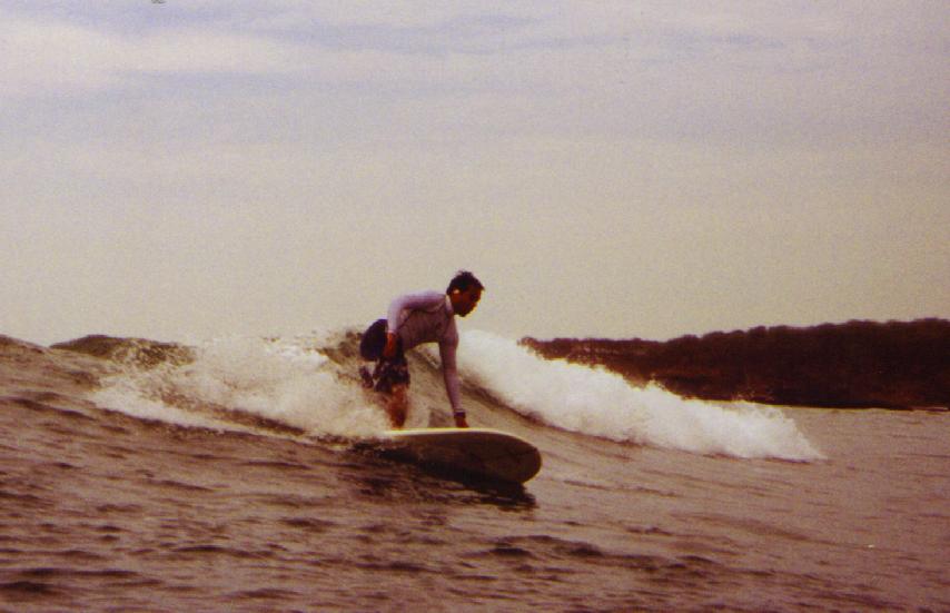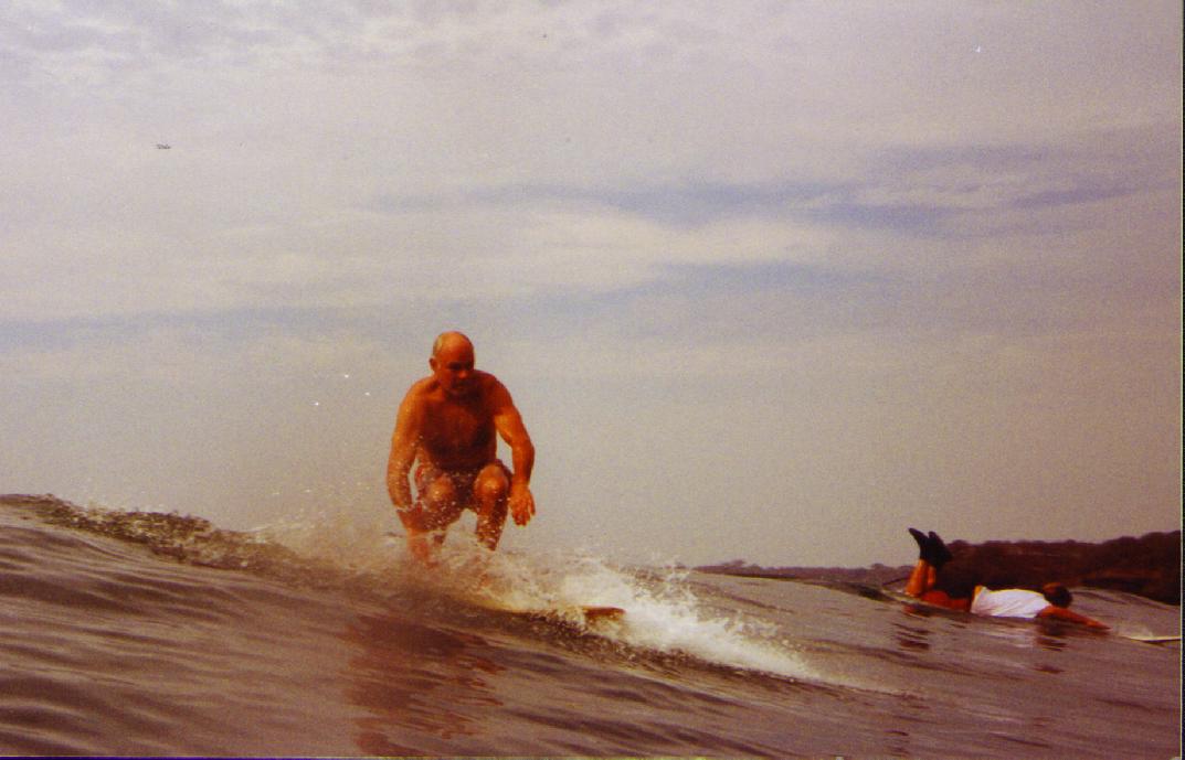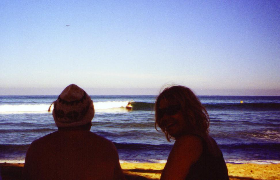 | Carolyn, with John Paul from San Antonio, in front of the Left watches Texan, Mark Robson, catch one. |