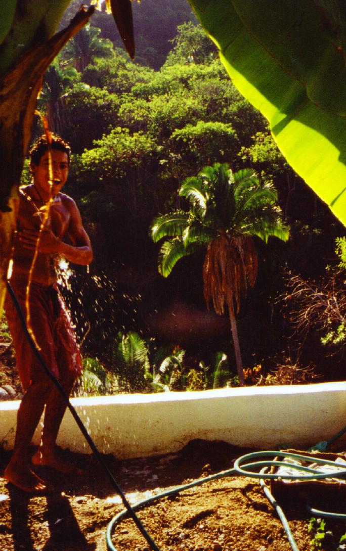 | Mathias' construction helper, Luis, takes a Mexican shower |