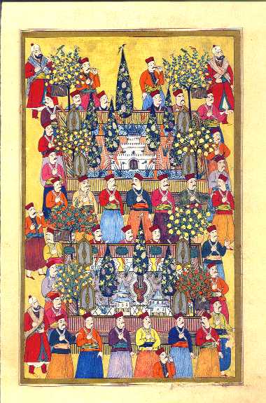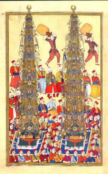 The first two candy-gardens appear in (161b) while the last two of the festival-trees are shown in (162a), all being carried by members of the Arsenal corps while sackers continue to prance around.