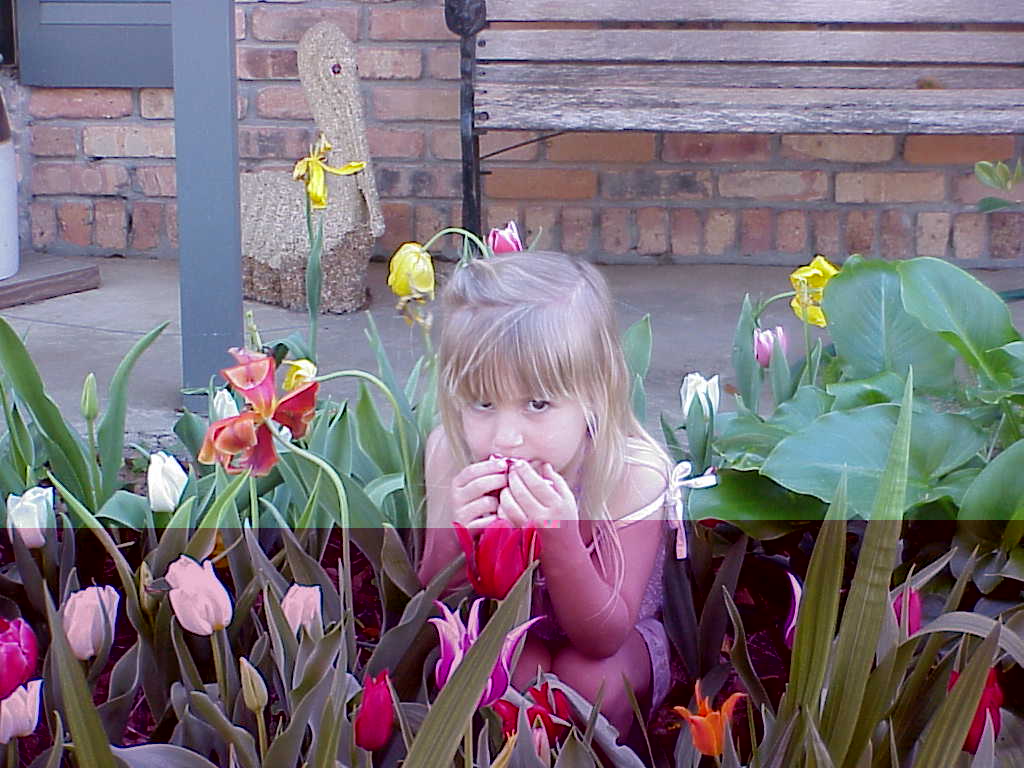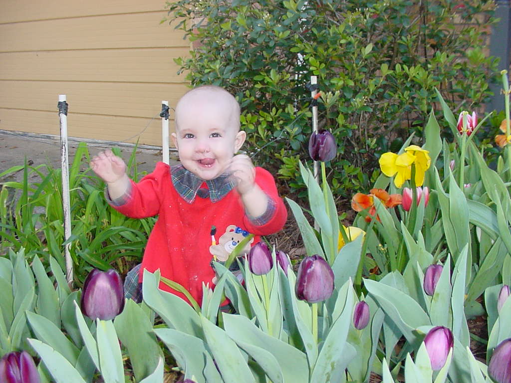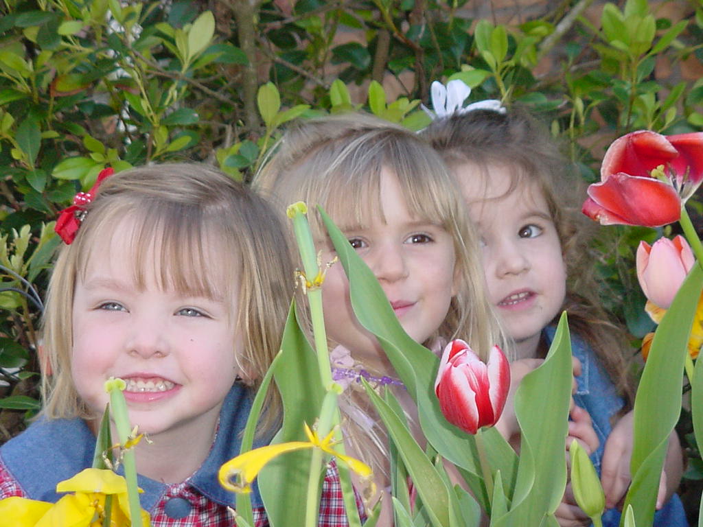 And Uncle Joe likes to put the girls in the tulip bed for a photo shoot.