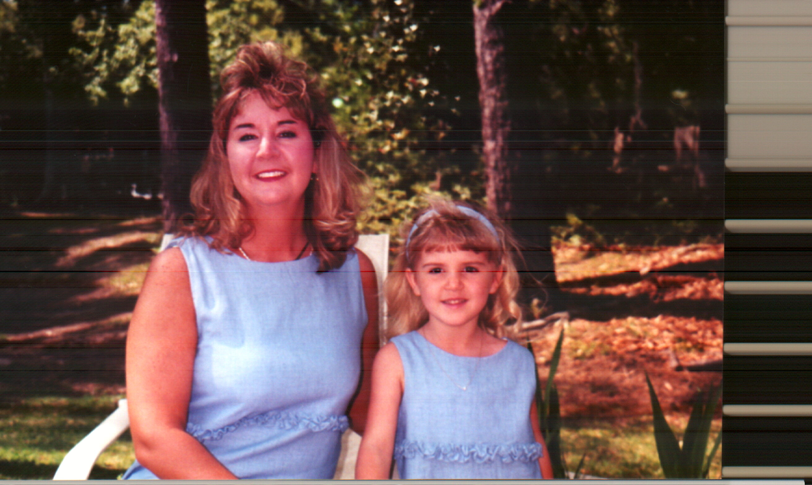Mom and daughter show off twin dresses.