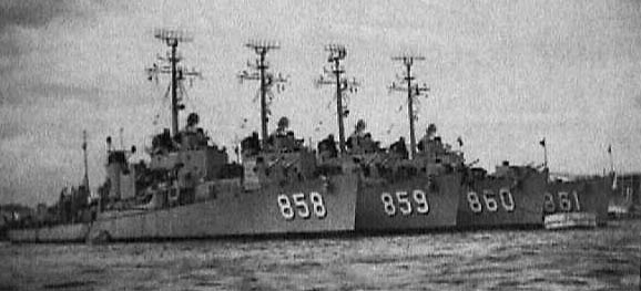 A couple pictures of our Task Group Bravo members. The Blandy 943 -- The FT Berry 858, Norris 859, McCaffrey 860, and Harwood 861. The next set is of the Keppler 765 and the Wasp CVS 18.