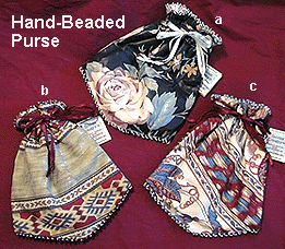 Beaded Barrettes, Fabric Purses with Beaded Edges, Earring and Pendant Set