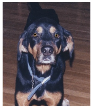 This is my dog Samantha, her eyes look a little strange because I had to doctor them up, the flash from the camera made her look psycho. |