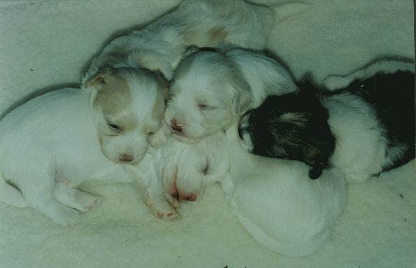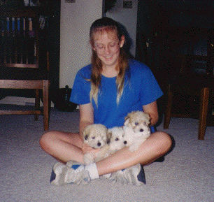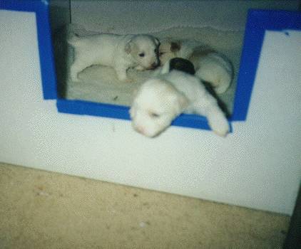 They are so cute when they are sleeping "Hey, let me out of here, I want to see the world!!" Here are three of Diane Callison's puppies, at nine weeks old.They are so adorable, and sooo soft Go back to the main index
