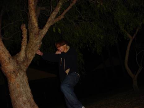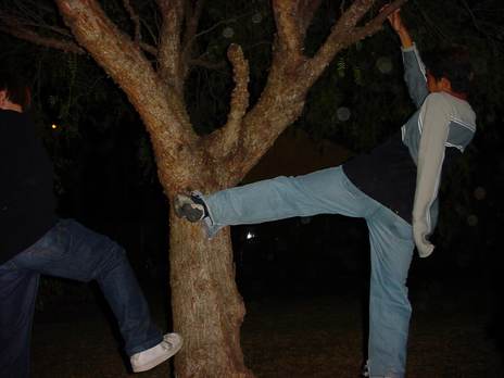 Chai bashing a tree.
