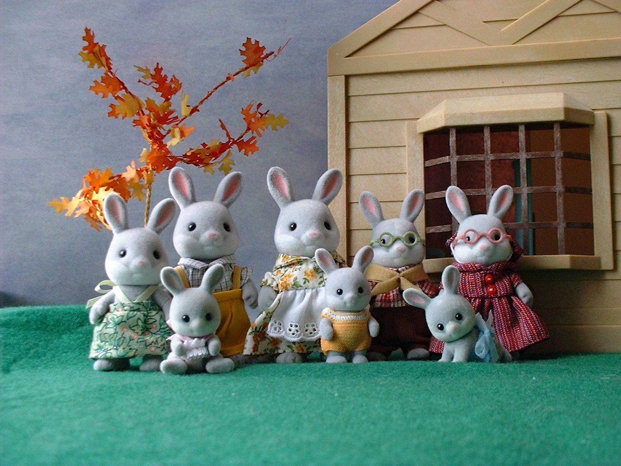 The Summerfields: Breck, Marigold, Jade, Harrison, Brit, Comfrey, and Gardenia. Grandparents: Cecil and Myra The JP animals do not have assigned names, so these are names that I chose. Harrison is not pictured. He is on his way from Hong Kong, thanks to Rina. Jade is wearing a dress I made for her, not her original clothes. |