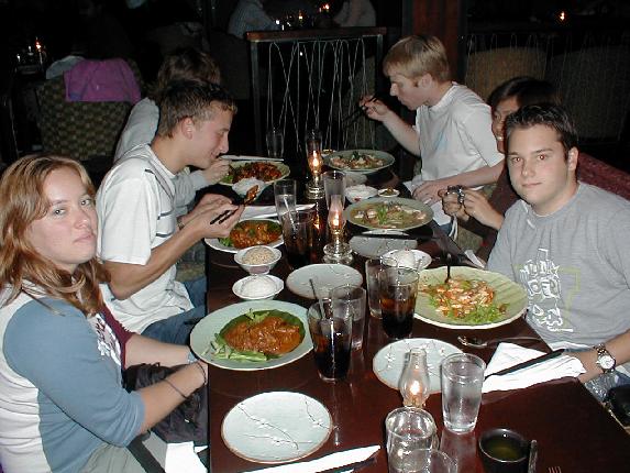 The first evening we had dinner at this Malaysian restaurant. T'was very, very tasty. We paid 40 dollars in tax, total. It's not good to be a company of more than 7 in this country. 18% tax, blah. And they call us Communists!