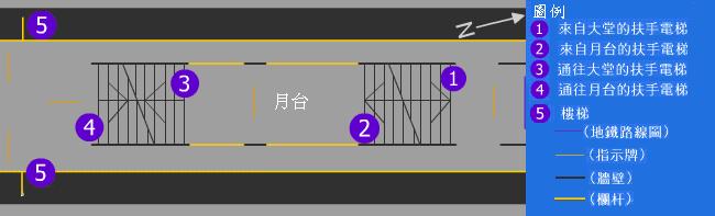 方法二 : 從地鐵到上環站並從車尾部份離開月台往大堂,乘扶手梯期間亦會找到該小月台。但如果閣下要看清楚一點,就必須穿越住兩邊方向乘客的欄杆(如平面圖所示)。