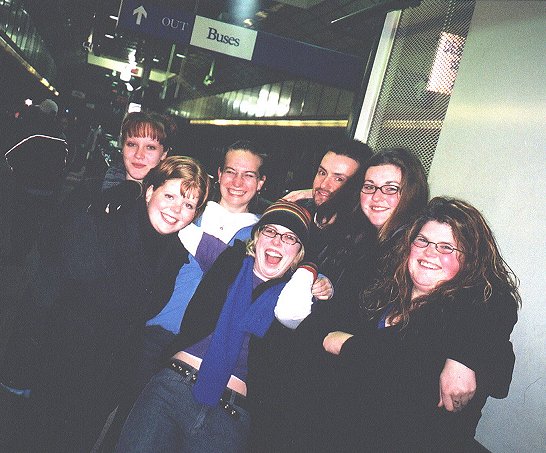 This is a bunch of my friends going to the Vancouver Canucks / Colorado Avalanche game (which Canucks lost 5-2) at the Skytrain station. Left to right is Christine, Holly, Jessica, Jess, Kieth, Rachel and Leeanne.
