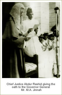 JUSTICE ABDUL RASHID GIVING THE OATH TO MR. JINNAH
