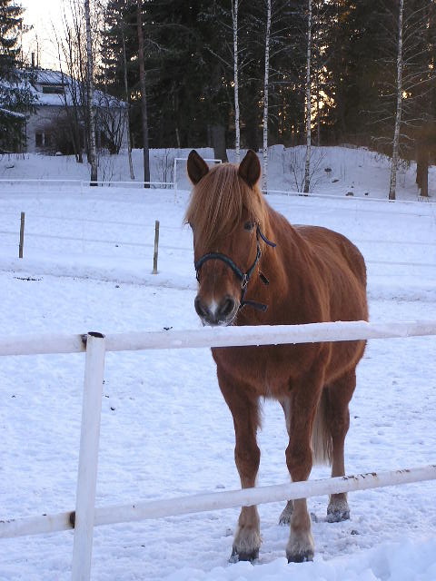 10.10 > Sompi on kotiutunut hyvin tallille, se on jopa tapellut muutaman hevosen kanssa, lähinnä vain laumapaikasta ;> Ratsastaessa kulki hyvin, tosin jäykästi. Tositoimiin Sompi pääsi Tipsun kanssa ja saa nähdä, millainen varsuli tulee, kun vanhemmat ovat kilttejä suokkeja ^_~ Oria kovasti odotan varsasta (:.