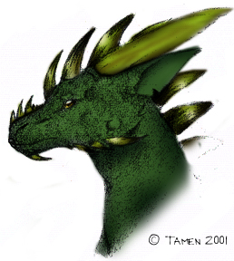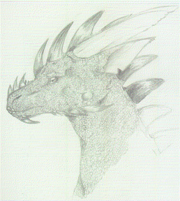 | This guy was a beautiful sketch in my polka-dotted sketchbook. Unfortunately, I worried about the fact that he was passed around the room more often than not when everyone wanted to see what I had been up to artwise. *SO* I scanned him in on my crappy scanner (see the original horrible quality pic), touched him up and colored him, which gave me the above product. I think he'd look cute on a t-shirt or coffee mug. I found him to be quite the opposite to my other dragon. |