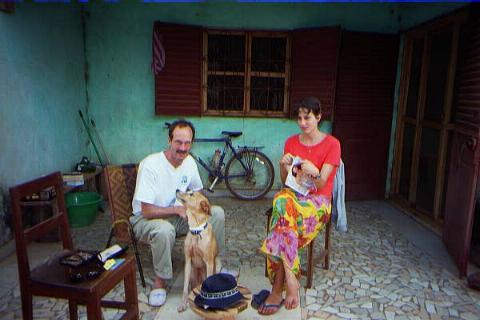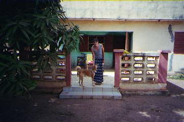 My father, Cass (the dog) and Urska in front of Urska's house.
