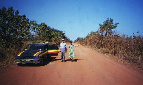 We flew into Bamako, Mali since it is a lot closer to Siguiri (Urska's town) than Conakry (the capital of Guinea) is. After spending a night in a horrible, run-down hotel, we rented a bush taxi for the 200 km drive to Siguiri. Bush taxis are horrible cars which probably wouldn't be legal in any Western countries since they're in such bad condition! Once we left Bamako, the road was no longer paved. So it was an extremely bumpy ride and of course there was no air conditioning, so the windows were open and by the end of the trip we were completely covered in red dust. Throughout the trip our car broke down about six times. This included the muffler falling of at one point! This here is a picture of us stranded in the middle of nowhere...