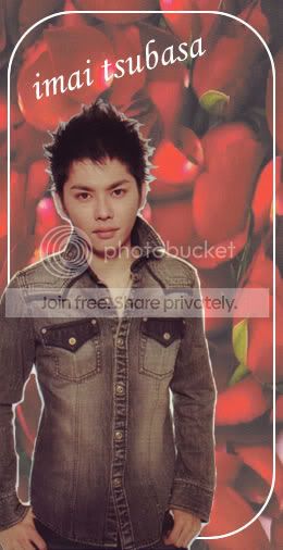 Name: Imai Tsubasa 今井翼 Nickname: Tsubasa,Tsuba,Imai-kun Date of birth: 17 October,1981 Zodiac: Libra Birth Place: Kanagawa, Japan Height: 172 cm. Weight: 54 kg. Measurements: B-86 cm / W-65 cm (25.5) / H-88.5 cm Blood Type: A Shoe Size: 25.5 cm. Perfume: Chanel Allure Favorite Food: sushi (Uni), grilled squid, crab, nattou, ramen Favorite Flower: (-) Favorite Color: (-) Scared of: cats, insects, birds, frogs quick-moving animals Interest: fashion design, drawing, baseball, soccer, playing videogames, collecting figurines, cooking & gourmet, playing darts Talents: dancing, fashion, drawing, talking, forgetting things Favorite J-Pop: TMR, Fumiya Fuji, The Checkers, Hikaru Genji,Tsuyoshi Doumoto, DAI... Favorite J-Rock: X-Japan, Malice Mizer, Kuroyume Sports: Baseball, Swimming, Track and Field, Soccer Family: Dad, Mom,elder sister Pets: - (none) Close-Friend: Takizawa Hideaki,Domoto Tsuyoshi,Ikuta Toma Occupation: (-) Education: (-) E-mail: tsubasa@joqr.net Dramas: Mokuyou no kaidan (1995) Brothers (1998) Genroku Ryoran (1999) Summer Snow (2000) Never Land (2001) Saigo no Bengonin (2003) Yoshitsune (2005) Haru to Natsu (2005)