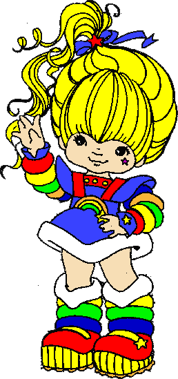 | I really hate that rainbows are associated with gays and lesbiens! Rainbows rock! Noah wasn't gay. If anyone knows why those with "alternative lifestyles" have stolen Roy G., please let me know. (I love Rainbow Brite! I will graciously accept any rainbow items you would like to give me. I've been looking for rainbow shoelaces forever.) Anyway, I was shopping with a friend the other day and I came across this awsome rainbow webbing belt! I showed it to her and she made this face like, "yeah, it's disgusting, isn't it?". They took the coolest symbol ever and turned it into something people grit their teeth at! So I've decided to start wearing rainbow stuff and trying in my own little way to get it back. They can keep purple, but I want the rest of the spectrum! |
