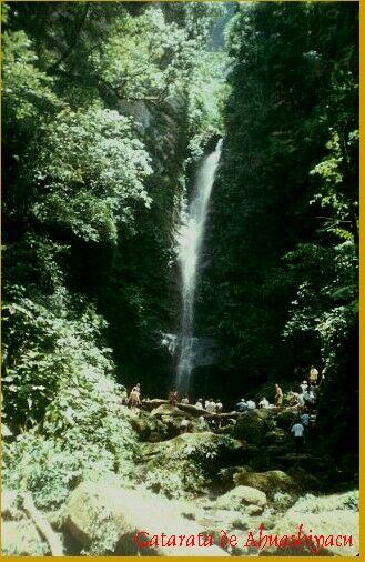 LeyendaSegun cuentan los curanderos y brujos, el agua que corre cristalina y juguetona por entre el espeso follaje, no es otra cosa mas que los retozos juveniles de las mas bella y codiciada hija de cacique que haya nacido bajo el exuberante follaje de la region. Celoso de la belleza de la joven AHUSI, su padre, un fiero cacique sospechaba que sus jovenes subditos y algunos de otra tribus vecinas, codiciaban a la bella muchacha para desposarla, cosa que no es muy de su agrado por lo que decidio conversar con uno de los brujos de la tribu y conjurar el peligro. No queria el celoso padre, que su hija muriera, sino que siempre estuviese a su lado, pero que nadie mas pudiera gozar del esplendor e ingenuidad de la doncella. Para ello nada era mejor que convertirla en agua, agua que calmara su sed tras la fatiga y tranquilizase su cuerpo luego de las constantes escaramuzas que sostenía con sus no menos fieros vecinos. Sin embargo el brujo, si bien accedio al pedido del cacique, decidio que su encantamiento no privaria a los demas de la alegria y belleza sin par de la joven por lo que decidio convertirla en una belleza caida de agua. Y surgio asi AHUASHIYACU, lugar de encuentro de los jovenes enamorados y paso obligado de los visitantes de nuestra región.