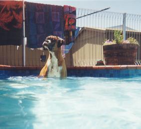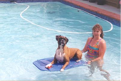 Every summer he would learn to do more fun things in the pool Eventually he learned to dive in from the side, pick up toys from the bottom and ride on the boogie board He won a photo competition for the Cleverest Boxer "Sitting On The Boogie Board" ![]() |