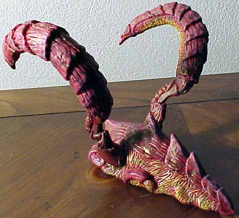| This model is an actual casting of the original sculpted piece. I wanted to add a cast version to the site so that you could see how the details of the cast resin appear when assembled and painted. I cast this model in 3 pieces, this is a great way to sculpt a series of your own miniatures to create an entire army by casting several of the same piece and adjusting the arms in different positions. |