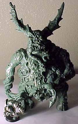| I decided that the model was not demonic enough for me so I cut the arms off and changed it slightly, this also shows you how easy it is to cut green stuff away and create an entirely new effect. |