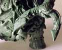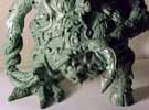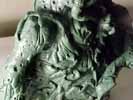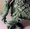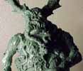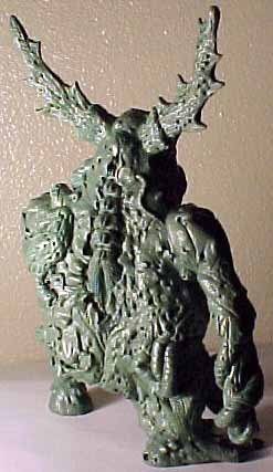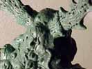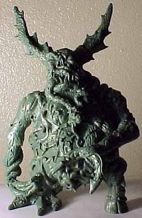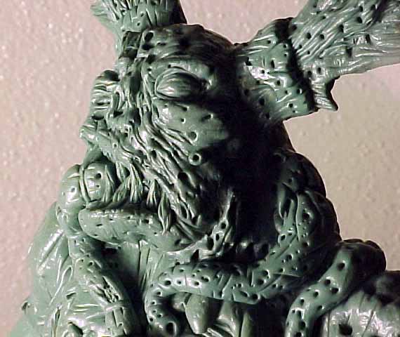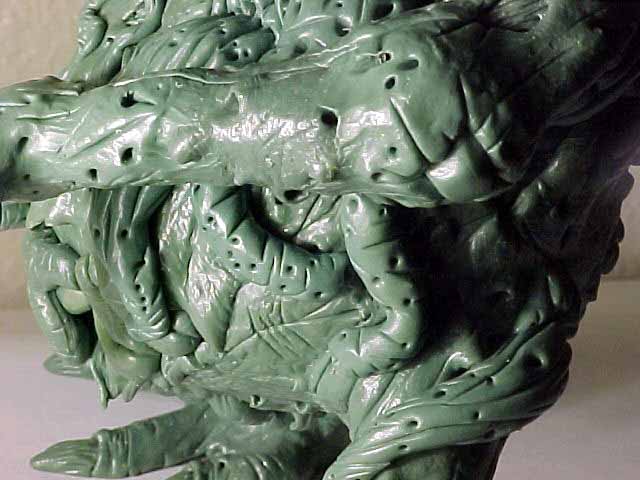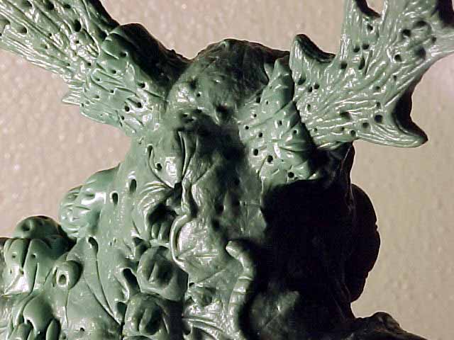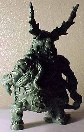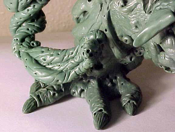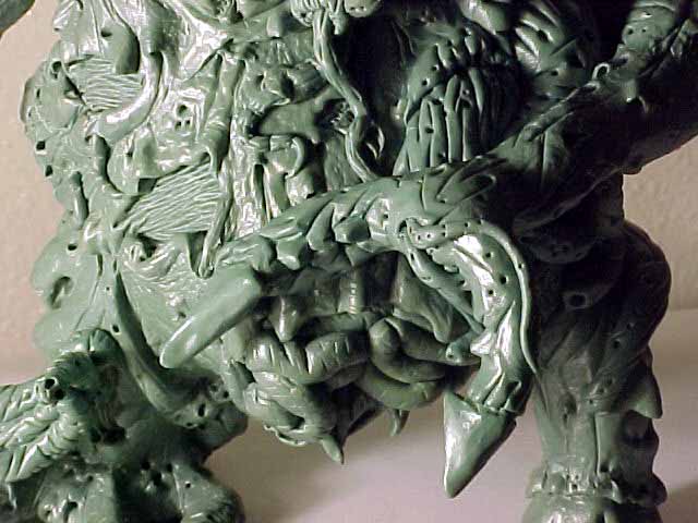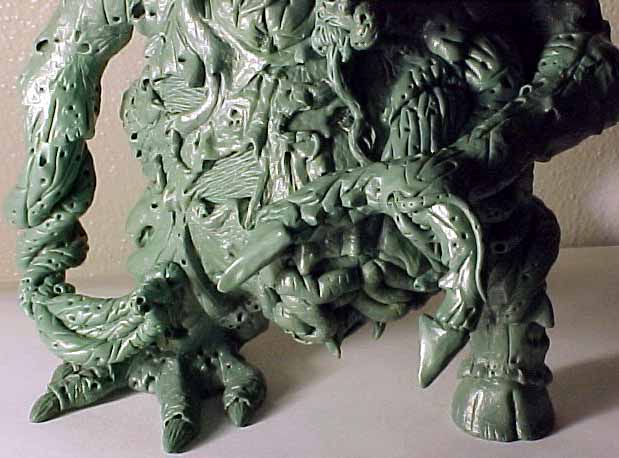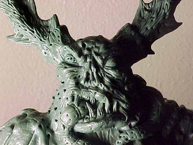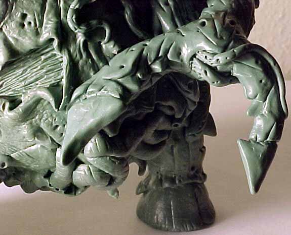 | This model was sculpted from the feet up. The last things added were the scythe and horns. I decided for a demonic look I would give the model two different feet and also other strange characteristics like the tongue with a face. There are several nice details that I added over time, like the exposed spine and the protruding bone. To view a larger image click the thumbnails. |