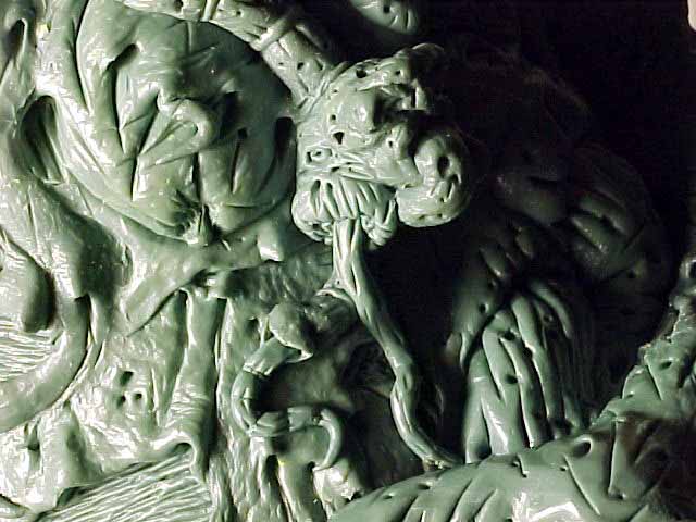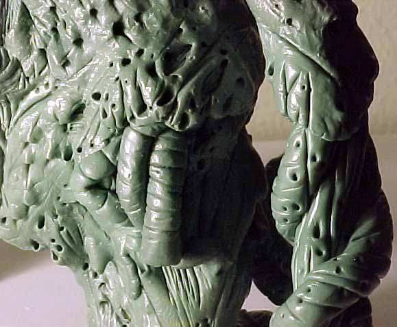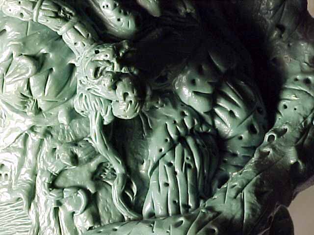 | This piece was really fun to design. I enjoyed creating different textures on the surface of the skin and the challenge to produce several openings in the flesh to show internal organs. |