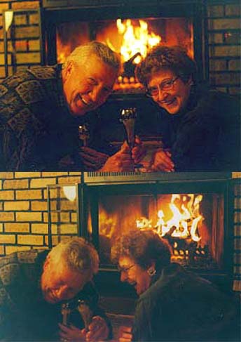 This may take some explaining... Well, our family is a little nuts, so one Christmas we all decided to take some silly photos in front of our fireplace. We had to force Mom and Dad into this one, and as you can see, they couldn't really control their laughter. Back to Family Album |