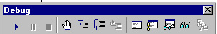 การใช้งาน Debugger ในการตรวจหาข้อผิดพลาดของโปรแกรม สามารถเรียก Toolbar ของ Debugger ได้จากเมนู View --------> Toolbar ---------> Debug ดังรูป