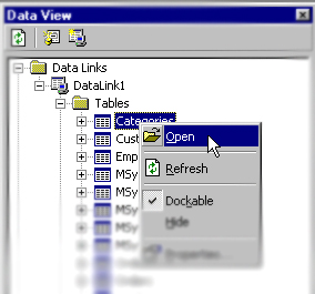 สามารถแสดง เพิ่ม แก้ไข ลบ ข้อมูลใน Data Base จาก Data Link ได้โดย เปิด Table โดยการคลิกขวา ------- > Open หรือ Double Click