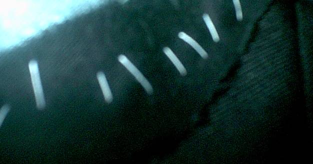 A close up on the sewing job... Almost looks like teeth.