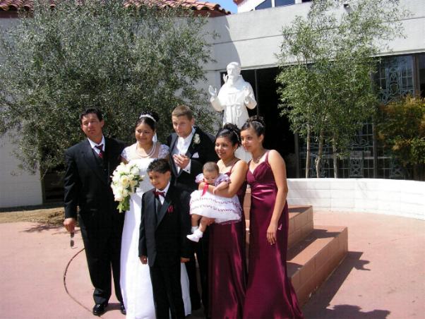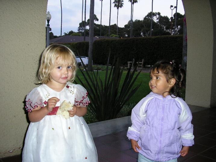 Grace got her dinner "to go" and nibbled on her tortilla as she got acquainted with the bride's family. |