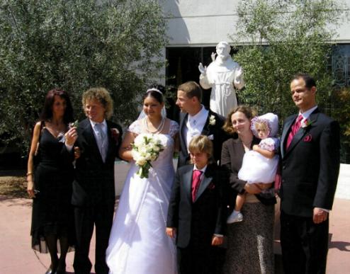 In this picture, Brigitta and Johann Heil are on the left of the bride and groom, and Davin,
