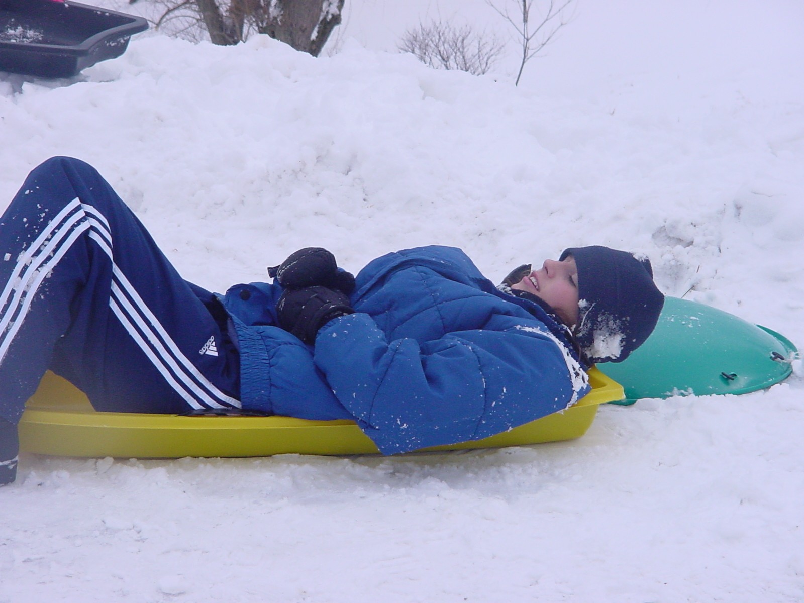 | Sled riding is an age old way of having fun with all your friends, no matter your age, in the winter months. Rebecca, Misty, Talayne and I found this out when we got out of school early one day. Even if u are 18, 17, and 15, sled riding is FO SHO cool. |