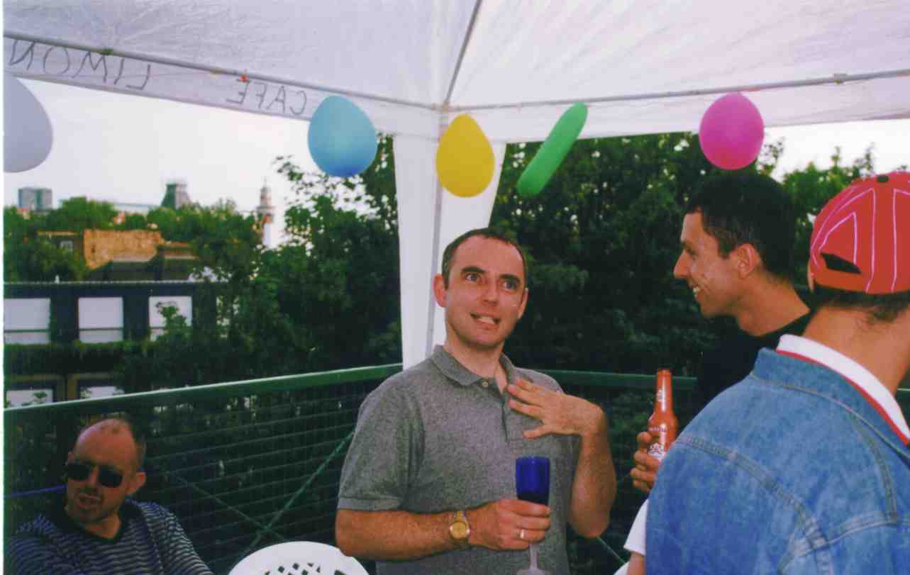 I think the line here was 'let's talk about ME' ... but I could be wrong. Nicholas enjoying a Bolly with Stephen at 'Cafe Limon' - Summer '97 |