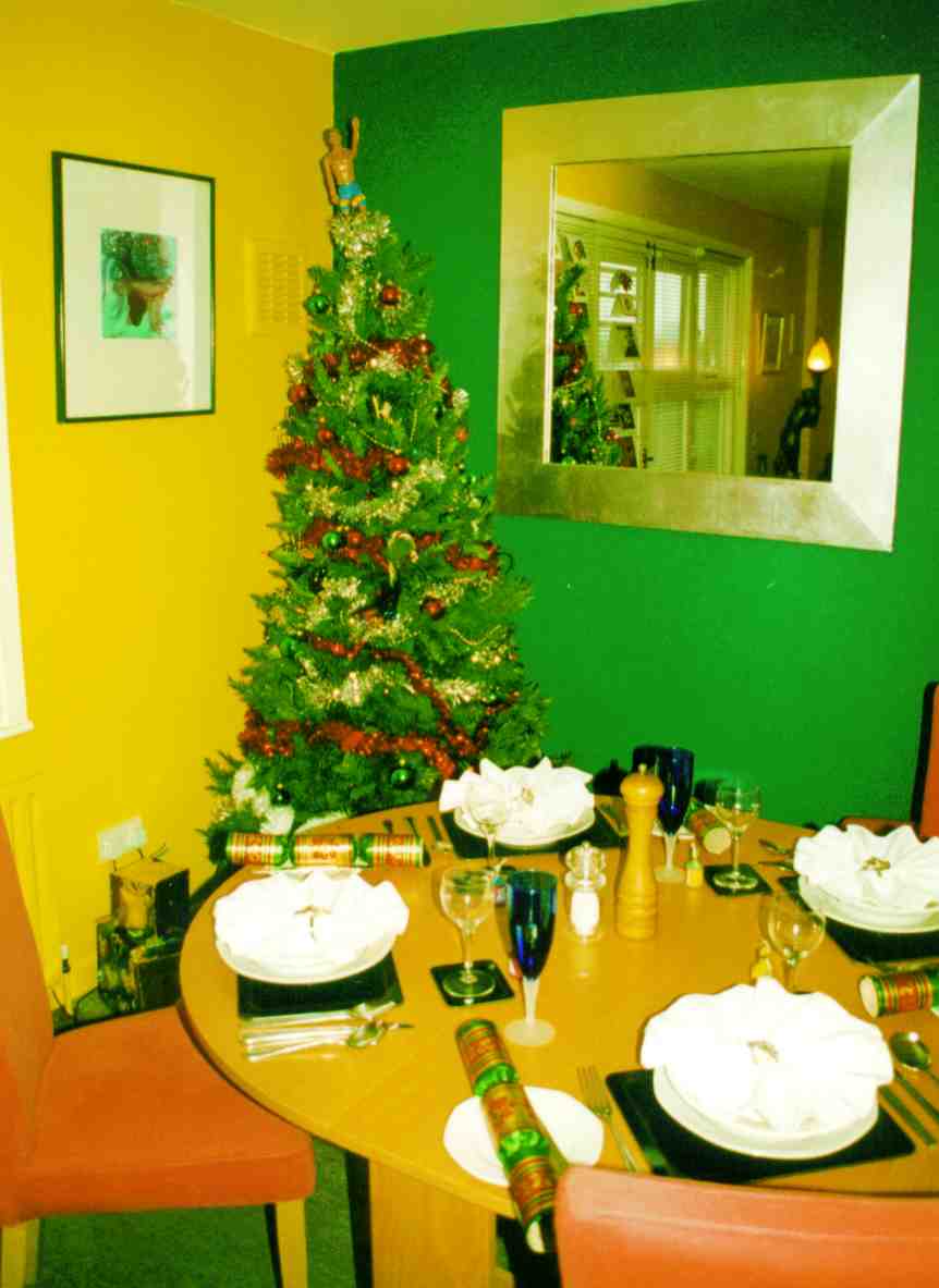This was Christmas '97. Note our lovely Christmas Tree complete with Miami Ken as the Christmas Fairy .... very touching. We actually hosted 7 for lunch which is a miracle in our place in Winter. Standing is Paul from Singapore, seated from left to right we have Tone, Philip, Me and Stephen |