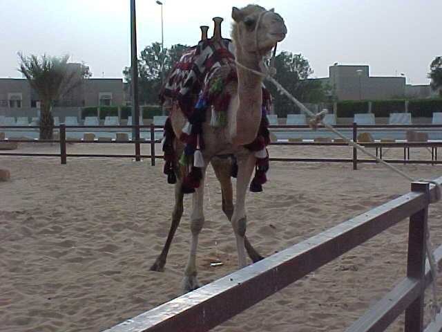 | I was stationed here in Saudi Arabia for little bit. I worked at the library, I did the marketing stuff (putting up fliers for events coming up), and fixed computers when they went down. It was not too bad. The climate starting out was rather warm and dry. As it got closer to summer, the temperature increased. Hot enough to cook eggs off the side walk. Within the first few days being stationed here, we got a chance to ride camels. | ![]() |