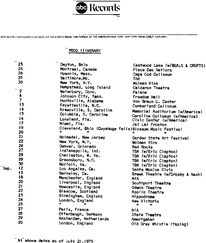 ITINERARY 1975