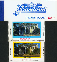 | Deze inkomkaarten kan je natuurlijk alleen maar verkrijgen als je naar Graceland bent geweest. Het bovenste boekje is het Ticket boekje. Hier vind je tickets in voor: Car museum, "Sincerely Elvis" museum, Elvis' Lisa Marie Airplane And Hound Dog II. Met de andere twee tickets kun je Graceland gaan bezichtigen. |