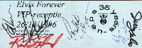 | VIP - kaart van Elvis Forever. De UEPS was hier 35 jaar geworden. Deze VIP - kaart is getekend door: The Stamps Quartet & Shaun Nielsen. |