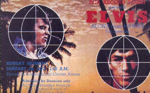 | Dit is een inkomkaart van de Aloha From Hawaii (via satellite). Het concert werd gegeven op Zondag morgen, Januari 14, 1973. om 1:00 (AM) |